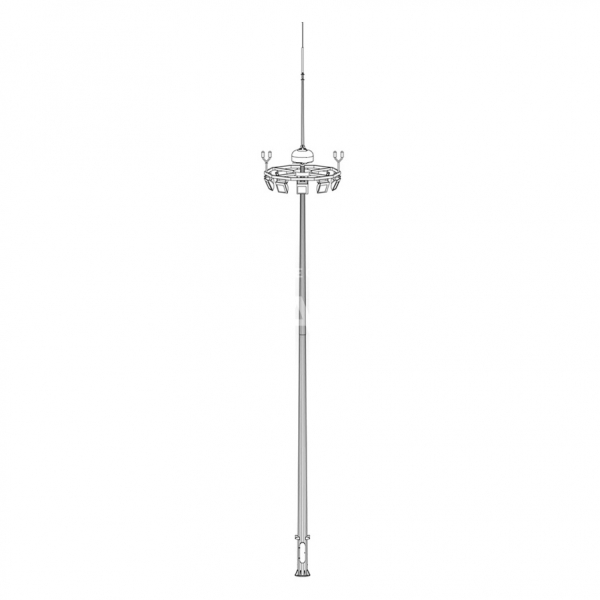 Высокомачтовые осветительные установки высотой 25 метров изготовленные на нашем заводе поставляются в комплектации с мобильной короной, анкерным элементом фундамента, эксплуатационным и монтажным комплектом.